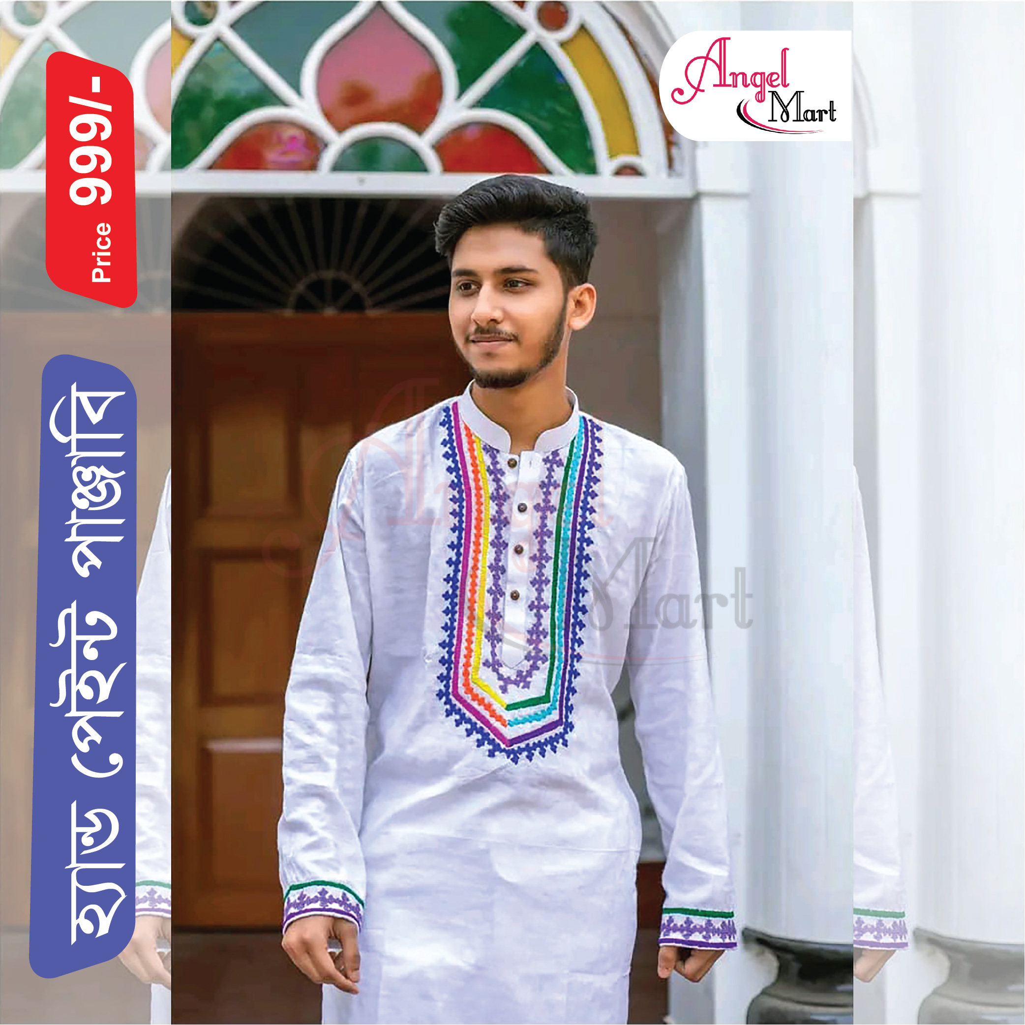 Description: ১) কুমিল্লার ঐতিহ্যবাহী খাদি হ্যান্ড পেইন্ট/প্রিন্ট পাঞ্জাবি। ২) খাদি পাঞ্জাবিতে হাতে পেইন্ট করা হয়। ৩) রঙ ওঠার কোন সম্ভাবনা নেই। ৪) কাপড়ের মান অনেক ভাল। ৫) সাইজ ৩৮, ৪০, ৪২, ৪৪, ৪৬।কুমিল্লার খাদি হ্যান্ড পেইন্ট পাঞ্জাবিঐতিহ্যের খাদির রূপ খুলছে আধুনিকতায়। আভিজাত্য কমেনি; বরং তৈরি হচ্ছে নানা রকম পোশাক। শীত শুধু নয়, গরমকালের উপযোগী পাতলা খাদিও তৈরি হচ্ছে এখন। ডিজাইনারদের হাত ধরে ঘটছে খাদির রূপান্তর। সুতা তৈরি থেকে তাঁতে কাপড় বোনা—পুরো প্রক্রিয়া হাতে হাতে। খাদি কাপড়ের মূল বৈশিষ্ট্য এটিই। এর আধুনিক উপস্থাপনায় অভিজাত ভাব কমেনি; বরং যোগ হয়েছে বৈচিত্র্য। ঐতিহ্যের ধারাও রয়েছে।ব্যবহারবিধি: হ্যান্ডপেইন্ট পাঞ্জাবিটি নেয়ার পরে কড়া রোদে ৩-৪ দিন শুকাতে হবে। এতে করে আপনার রঙয়ের টেকসই ভাল হবে। পাঞ্জাবিটি নেয়ার সাথে সাথে ব্যবহার করতে পারবেন। তবে প্রথমবার ধোয়ার আগে কমপক্ষে ৩-৪ দিন রোদে শুকাতে হবে। ডিটারজেন দিয়ে ধোয়া যাবে না। সাবান দিয়ে ধুইতে পারবেন। রঙ ওঠার কোন সম্ভাবনা নেই।